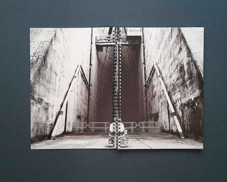 Em Sete Quedas, a metáfora também é refinada e se desdobra de múltiplas formas. A rigidez do concreto e a monumentalidade da construção de Itaipu remetem a um Estado duro, intransponível, acachapante; seus corredores sombrios parecem conduzir a salas de tortura. O silêncio dessas paisagens cinzentas soa imposto, pesado, como era a censura, e essa sensação também se faz presente quando vemos as imagens da pregressa força selvagem das cachoeiras em contraposição às águas tranquilas da represa – uma tranquilidade artificial, feita de rios e quedas forçados a seguir um curso determinado. Este fotolivro não deixa de ser um réquiem, também: pelas Sete Quedas (que foi inundada para a construção de Itaipu), pela vida de Jobim (e de tantos outros perseguidos, torturados e assassinados pelo Estado), pela democracia.